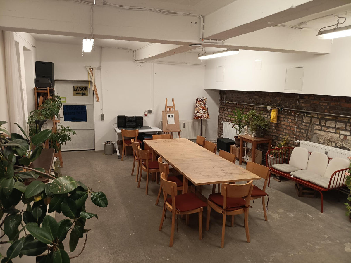 The Ökowerkstatt is at the backyard, after the elevator, at the end of the path on the right.